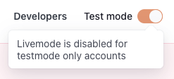 - Toggle on “Test Mode“ in the section below the Stripe test account information.