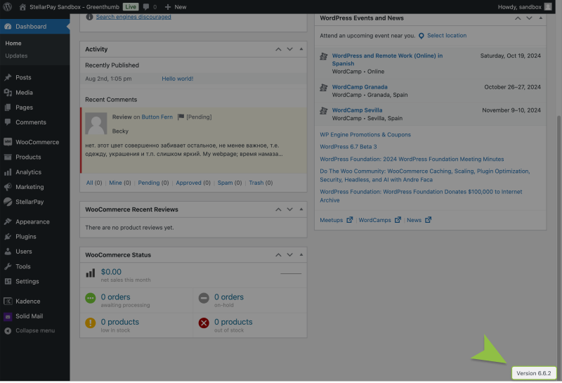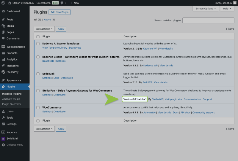 • StellarPay Version. The StellarPay version can be found on the plugin list in the WordPress admin.